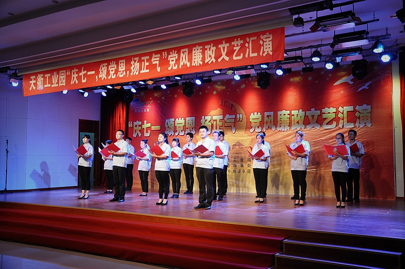 6月29日,天衢工业园“庆七一,颂党恩,扬正气”党风廉政文艺汇演精彩上演,德城区委常委、纪委书记王玉成,德城区委常委、宣传部部长骆晓东,德城区纪委常务副书记、监察局长吴海蓉等领导出席,天衢工业园全体机关干部、社区工作人员、辖区学校和企业代表等近400人观看演出。