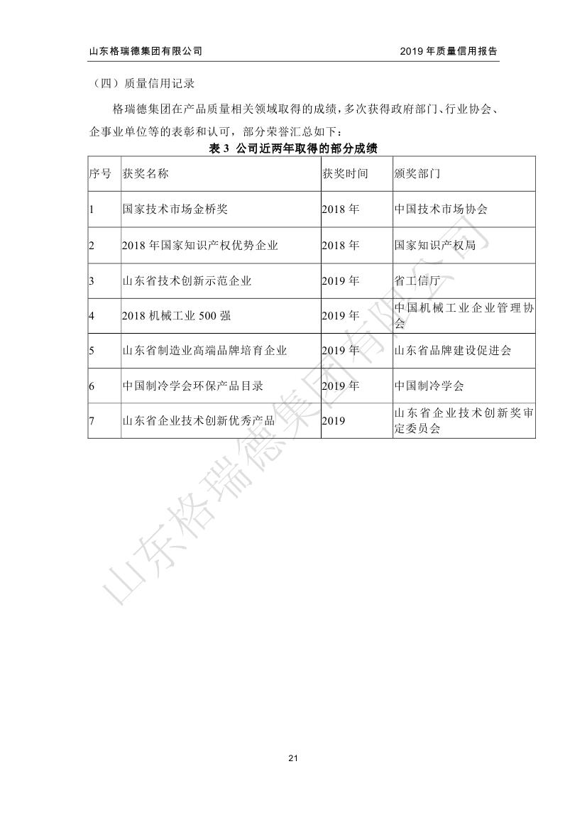 2019年度企业质量信用报告