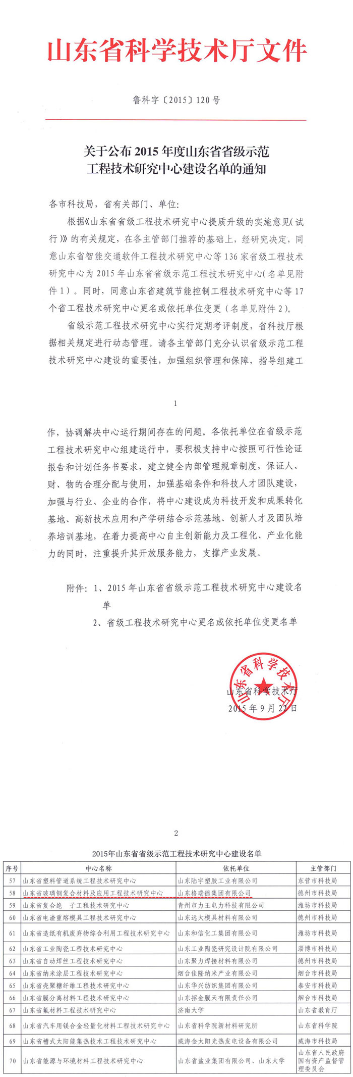 山东省玻璃钢复合材料及应用工程技术研究中心