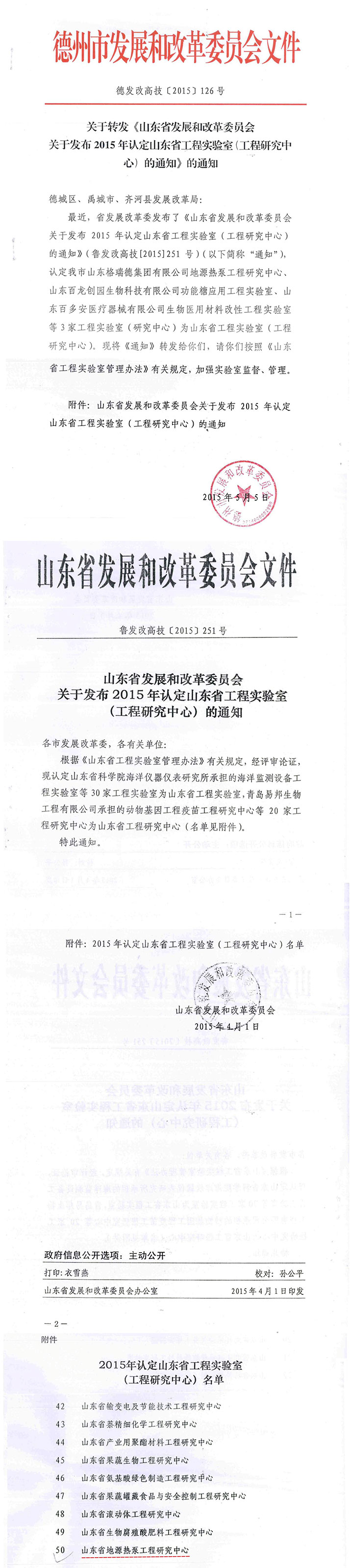 山东省地源热泵工程研究中心批文