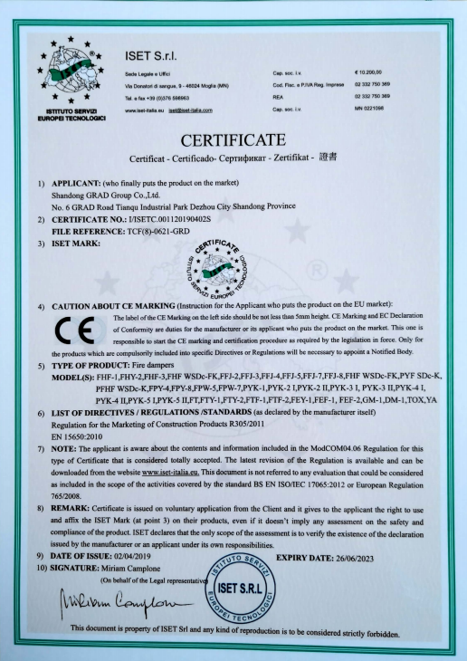 格瑞德集团具有独立的货物进出口资质,可自主报关和报检。具有对外承包工程资质证书,并顺利获得了中央空调末端及复合材料产品的AHRI、CE、SASO、ROHS等资质认证。