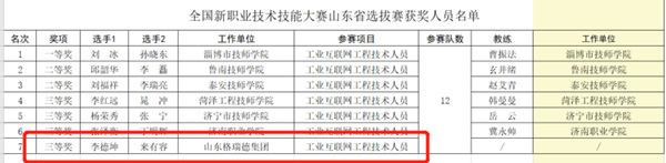 一、格瑞德集团荣获全国新职业技术技能大赛山东省预选赛三等奖