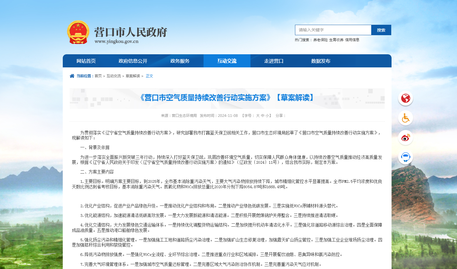 11月8日,营口市人民政府发布关于《营口市空气质量持续改善行动实施方案》公开征求意见的公告,其中提出,积极开展燃煤锅炉关停整合,持续推进清洁取暖。全力完成《营口市冬季清洁取暖实施项目方案》改造任务。因地制宜整村、整屯推进民用、农用散煤替代,保质保量完成北方地区清洁取暖改造任务。全力做好清洁取暖天然气、电力等能源保障工作,油气、电网、发电等国有企业加大基础设施投入,确保能源安全稳定供应,防止散煤复烧;已整体完成清洁取暖改造并稳定运行的县(市)区、园区要巩固清洁取暖成效。