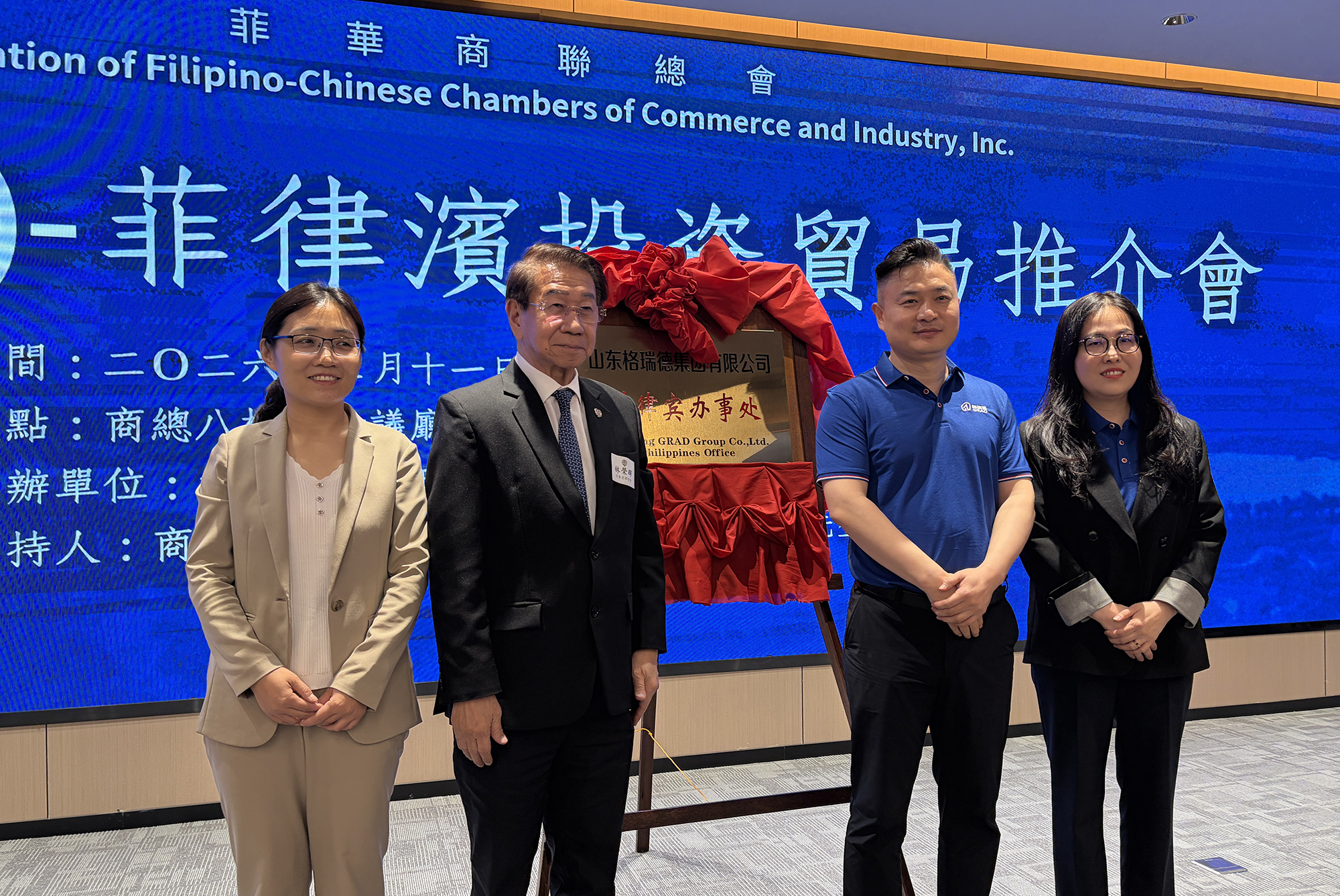 活动现场,山东格瑞德集团菲律宾办事处正式揭牌。菲华商联总会理事长林荣辉、德州市外办主任张方瑞、格瑞德集团总经理王志军、格瑞德国际贸易工程公司总经理扈淑君共同为办事处揭牌,标志着格瑞德在菲律宾市场迈入本地化运营、常态化服务新阶段,为当地客户提供更高效的技术支持、项目落地与售后服务。