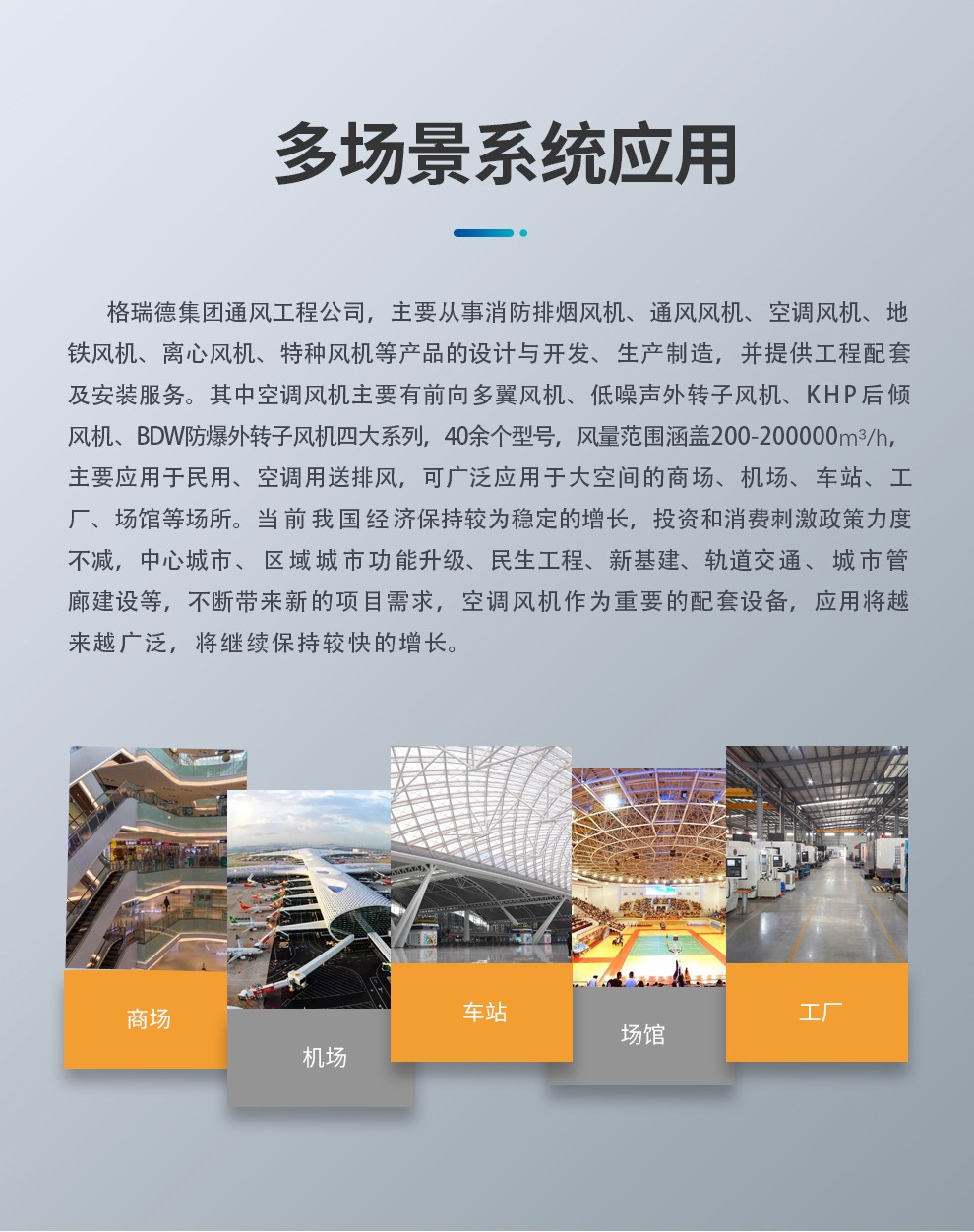 格瑞德致力于让人工环境更美好,通过打造空调工程、通风人防、复合材料、环保工程领域的全过程解决方案来满足客户需求,格瑞德构建了包括品牌规划、系统设计、技术开发、产品制造、整体施工、维护服务、检测认证、人才交流、产业集群的全生命周期产业链和产业生态。