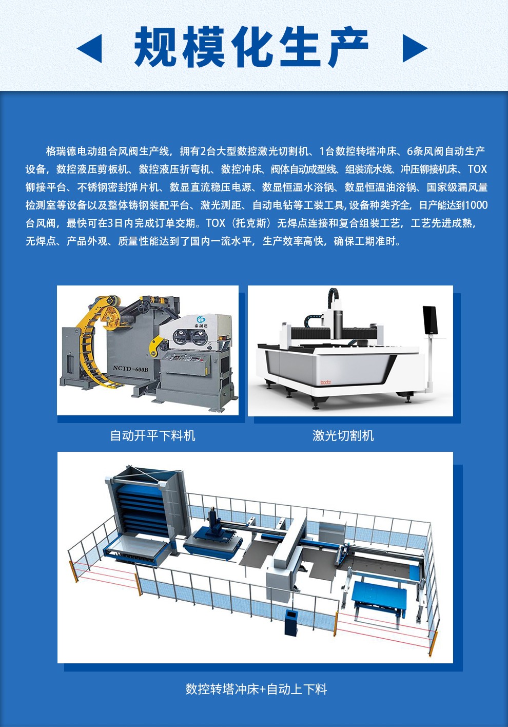 45万平方米的生产基地,20万平方米的高标准生产车间。格瑞德推行GIT准时化生产模式,在此基础上导入了6S管理和TPM全员设备管理理念,促使员工高效完成各项生产任务。