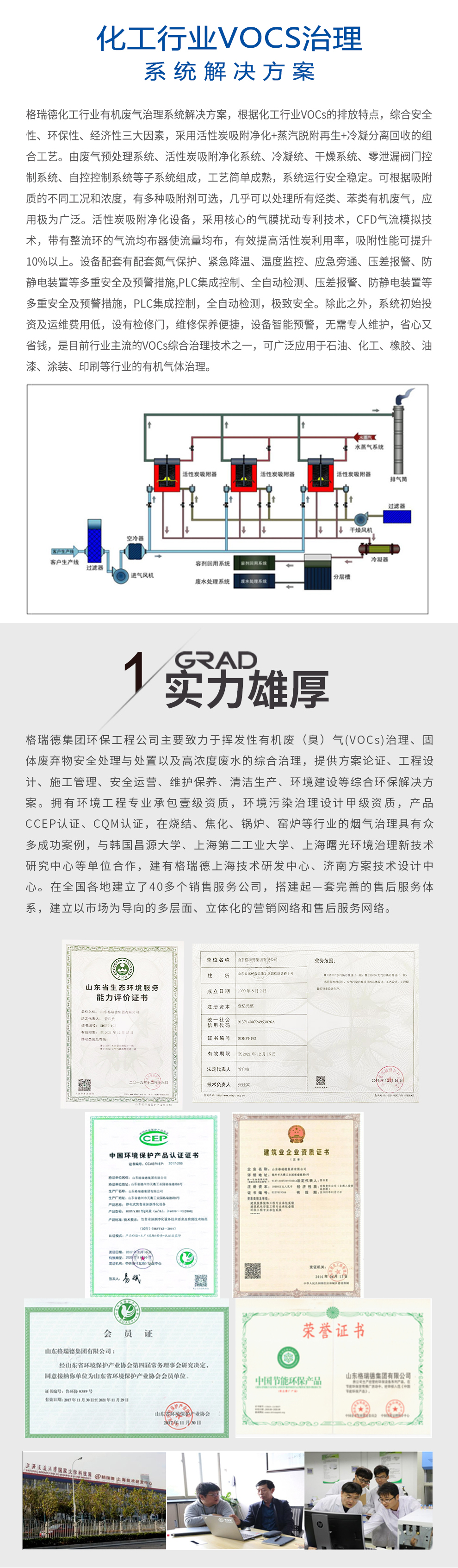 格瑞德集团致力于挥发性有机废气治理、固体废弃物安全处理处置、高浓度废水等净化处理工程,提供方案论证、工程设计、施工管理、安全运营、维护保养、清洁生产、环境建设等综合环保解决方案。