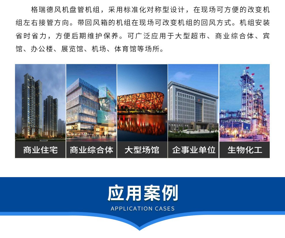 格瑞德致力于让人工环境更美好,通过打造空调工程、通风人防、复合材料、环保工程领域的全过程解决方案来满足客户需求,格瑞德构建了包括品牌规划、系统设计、技术开发、产品制造、整体施工、维护服务、检测认证、人才交流、产业集群的全生命周期产业链和产业生态。