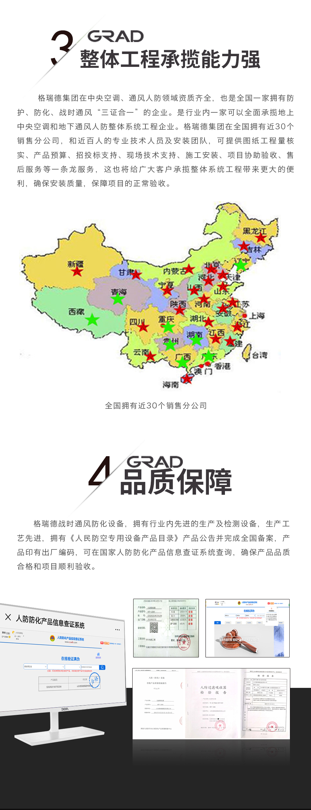 格瑞德致力于让人工环境更美好,通过打造空调工程、通风人防、复合材料、环保工程领域的全过程解决方案来满足客户需求,格瑞德构建了包括品牌规划、系统设计、技术开发、产品制造、整体施工、维护服务、检测认证、人才交流、产业集群的全生命周期产业链和产业生态。